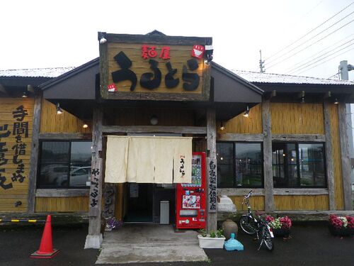 お昼は北秋田市へ お昼となり、こちらのお店へ 『麺屋 うるとら』 店舗外観 12:30頃入店 満席で数名待っているので、俺も待つ メニュー① メニュー② つけ麺メニュー では未食の辛つけ麺 850円を平日ランチタイム無料の大盛にあつもりで注文 備え付けの『寿司…