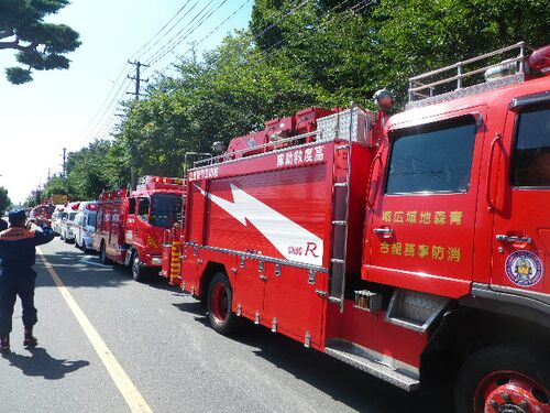 青森県防災訓練視察の日 では訓練の始まり! ずらりと並んだ消防車と救急車 訓練開始! まずは交差点での多重事故救出 無事、救出! 直後、どこからともなくヘリコプターが上空に現れた 屋上に取り残された人を救助に向かう 無事、救出! 続いて6Fの病室に取…