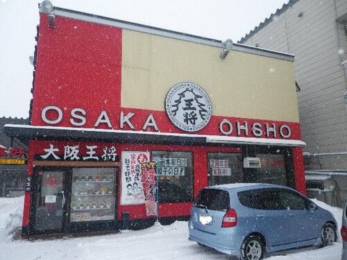 休み明けの月曜日 前日の休みは落ち着いた天気だったのに、また雪が降り積もる 何時まで雪が降るんだろう? 開催中の鹿角冬季国体が終了すれば、もう雪はいらないなぁ 地元新聞にフェアの告知が掲載されていたので、こちらのお店へ 『大阪王将』 店舗外観 大…